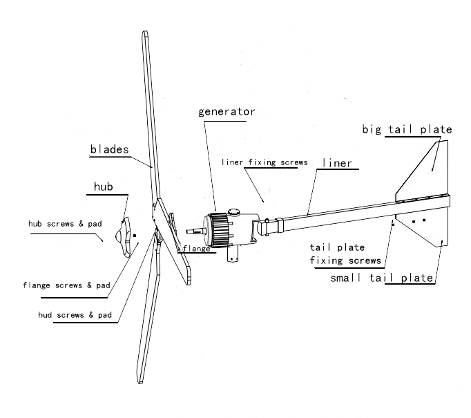 6、獨(dú)特的尾舵預(yù)偏設(shè)計(jì),自動精確對準(zhǔn)迎風(fēng)方向,提高輸出功率同時兼顧調(diào)整和強(qiáng)風(fēng)保護(hù)。