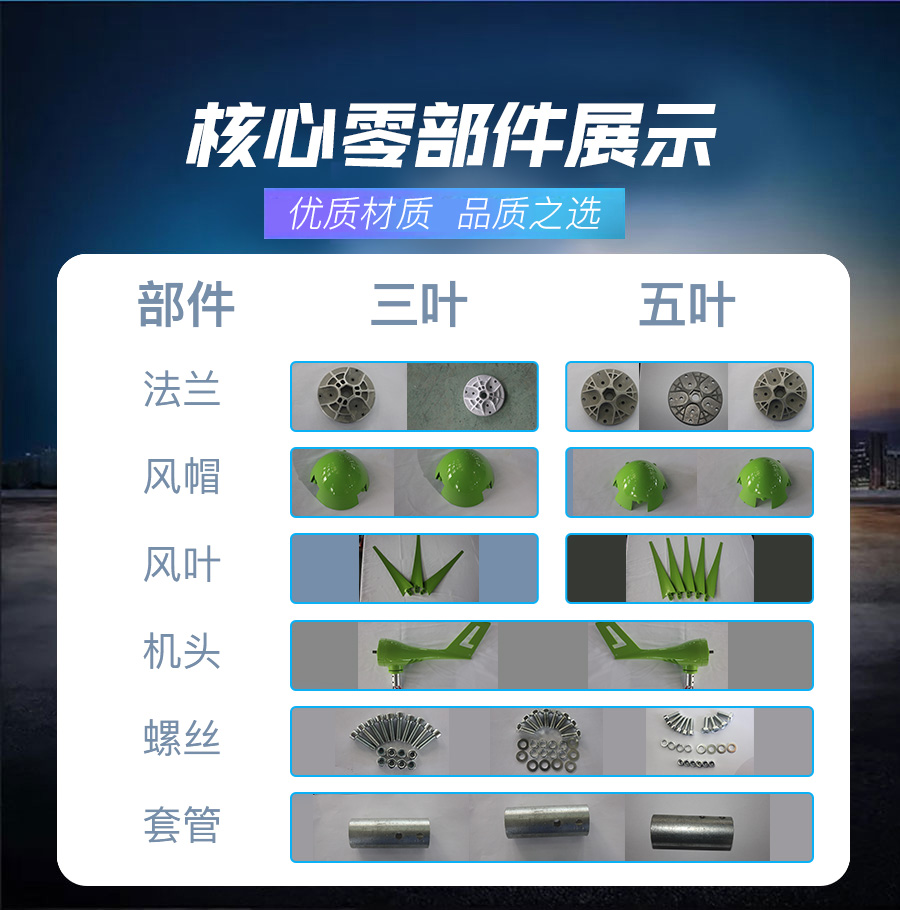 3、風(fēng)葉采用高強(qiáng)度復(fù)合材料,強(qiáng)度高,韌性好,防紫外線,防腐蝕,抗大風(fēng),具有良好的氣動性能。